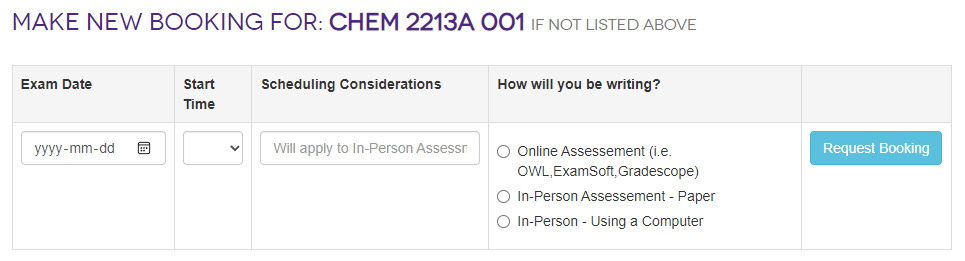 IMPORTANT: If your assessment is less than 10 days away and still is not visible for you to request, please email accommodatedexams@uwo.ca for assistance.